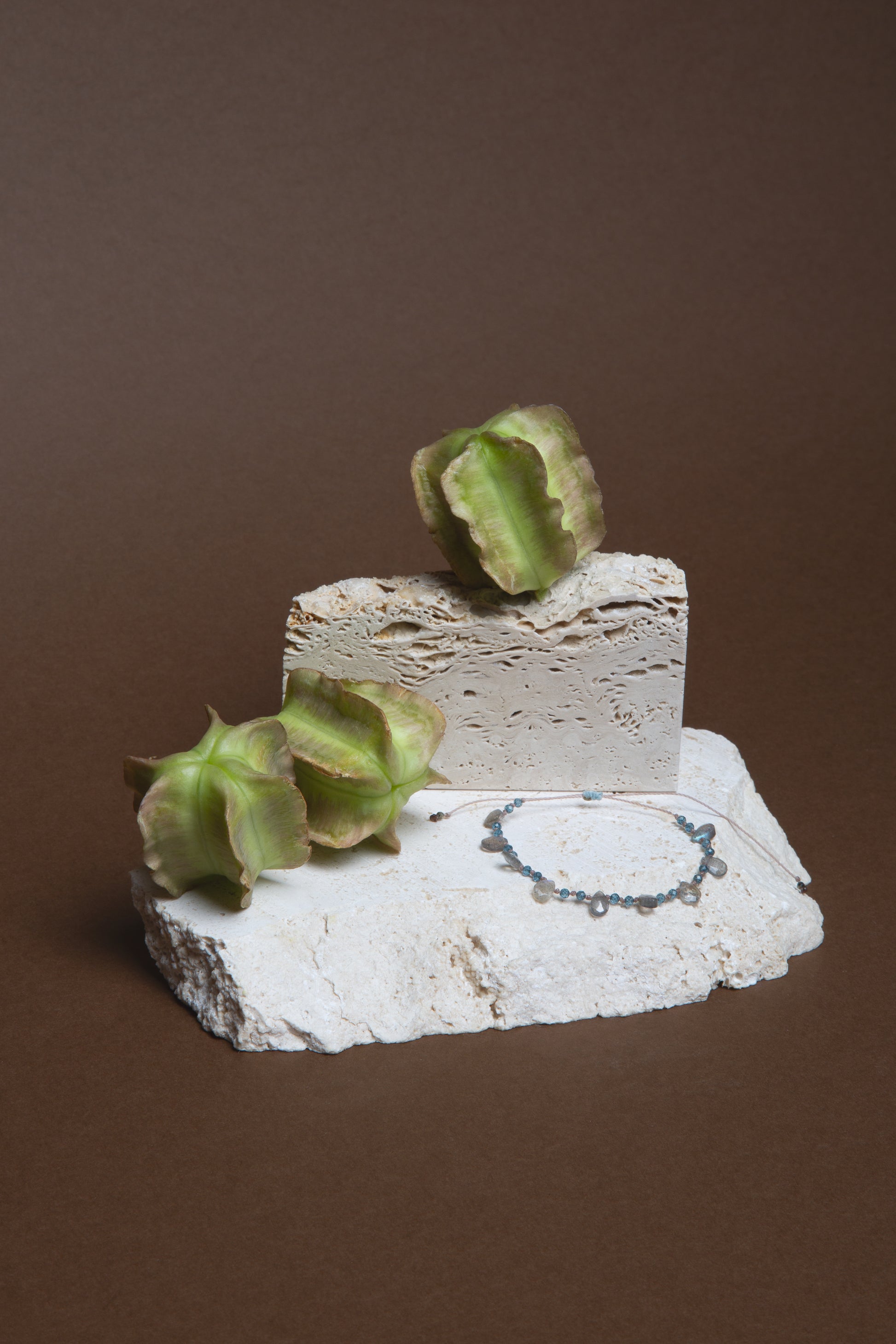 Braccialetto con gocce di Labradorite e perline di Topazio.
