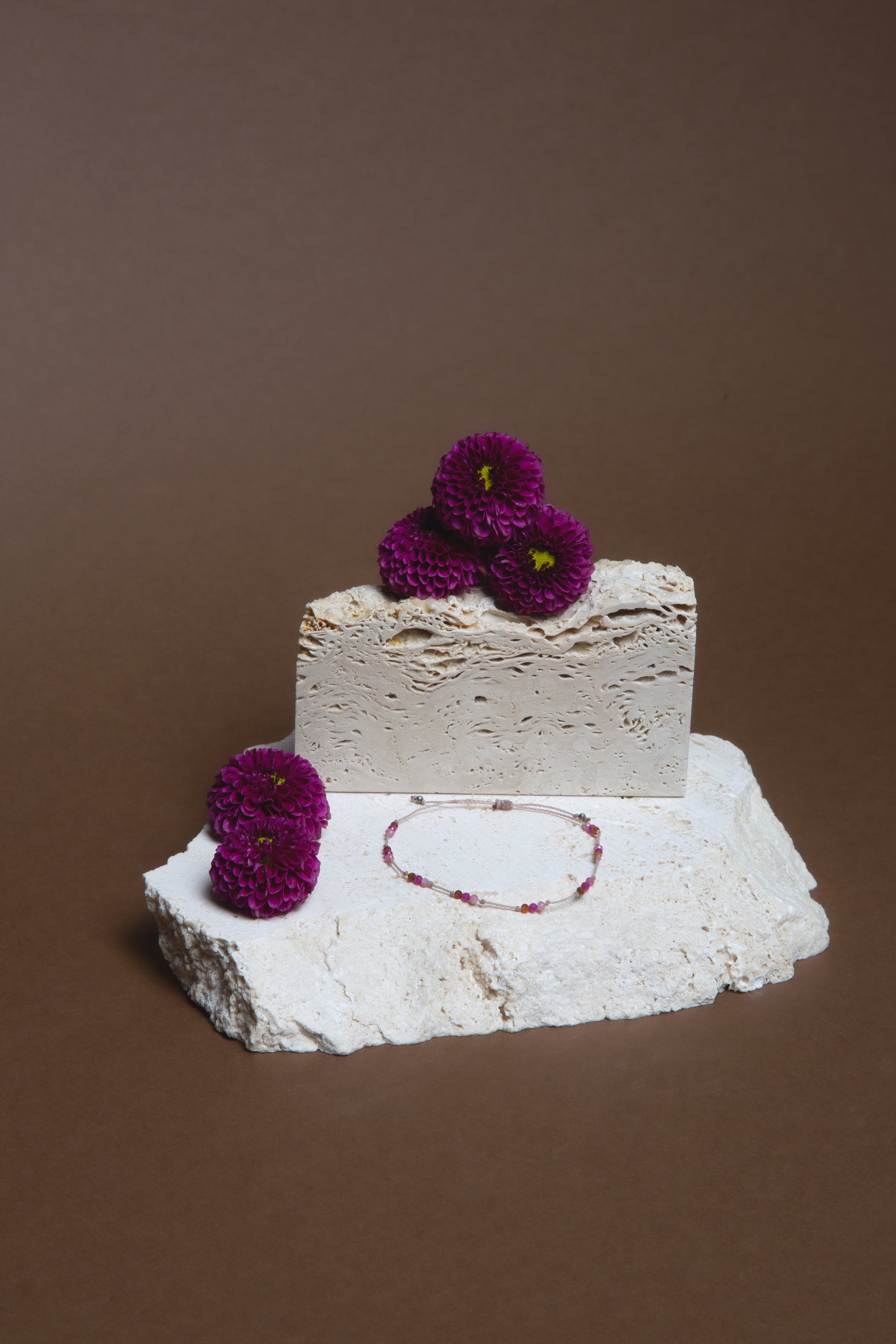 Braccialetto Tri-color regolabile con pietre semipreziose (rubino,tormalina,granato)