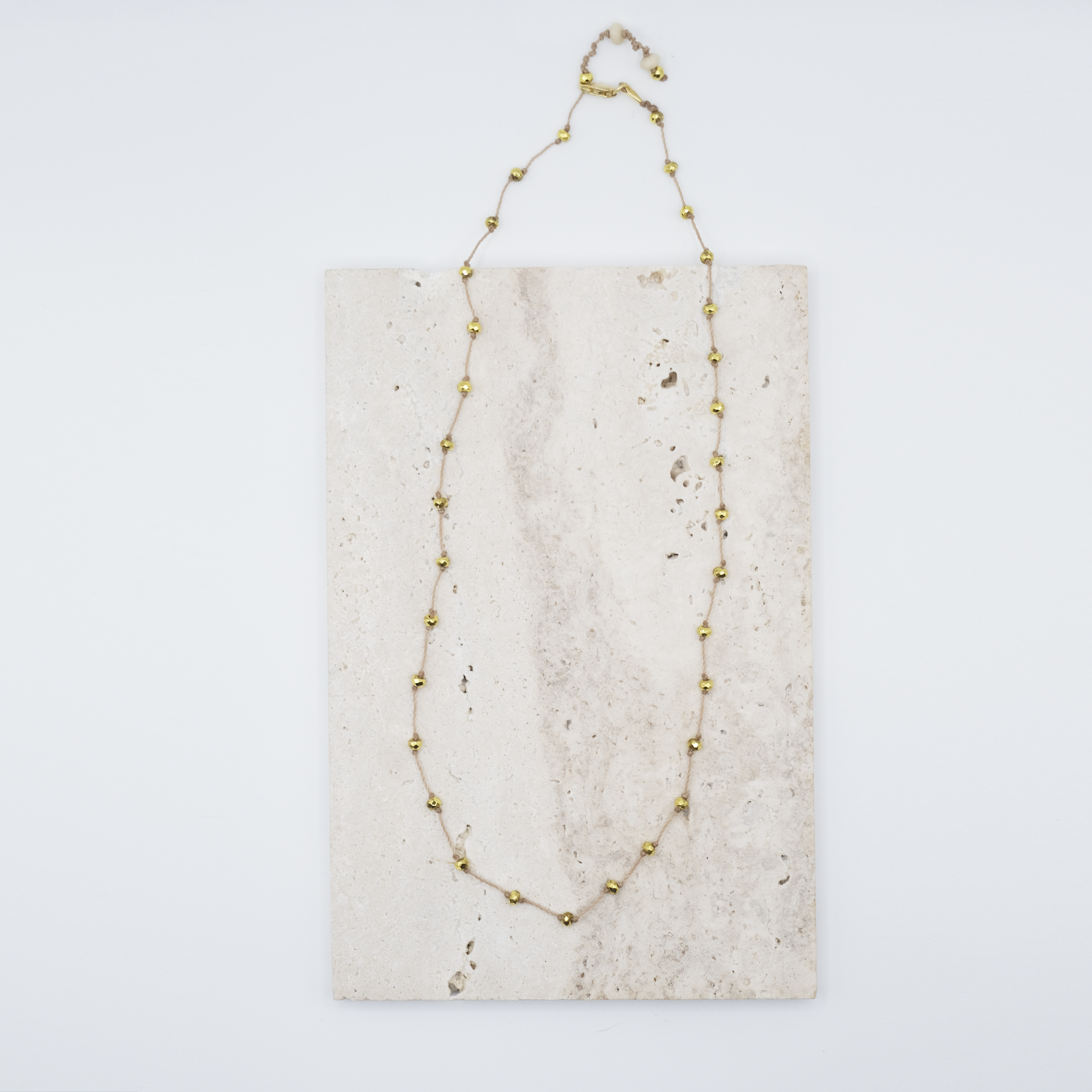 Choker regolabile in pirite oro sfaccettata di 3 mm, chiusura in argento 925 placcato oro.
