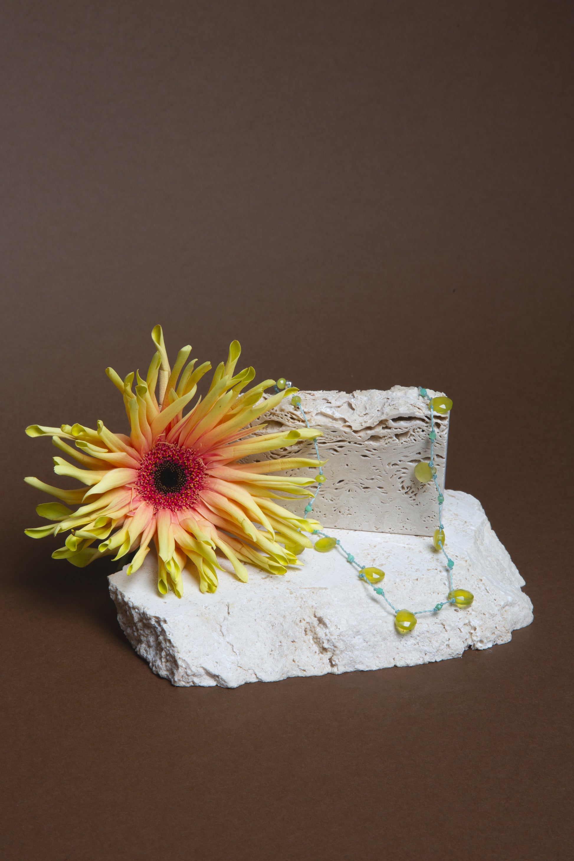 Collana regolabile con amazzonite e gocce di Eliodoro.