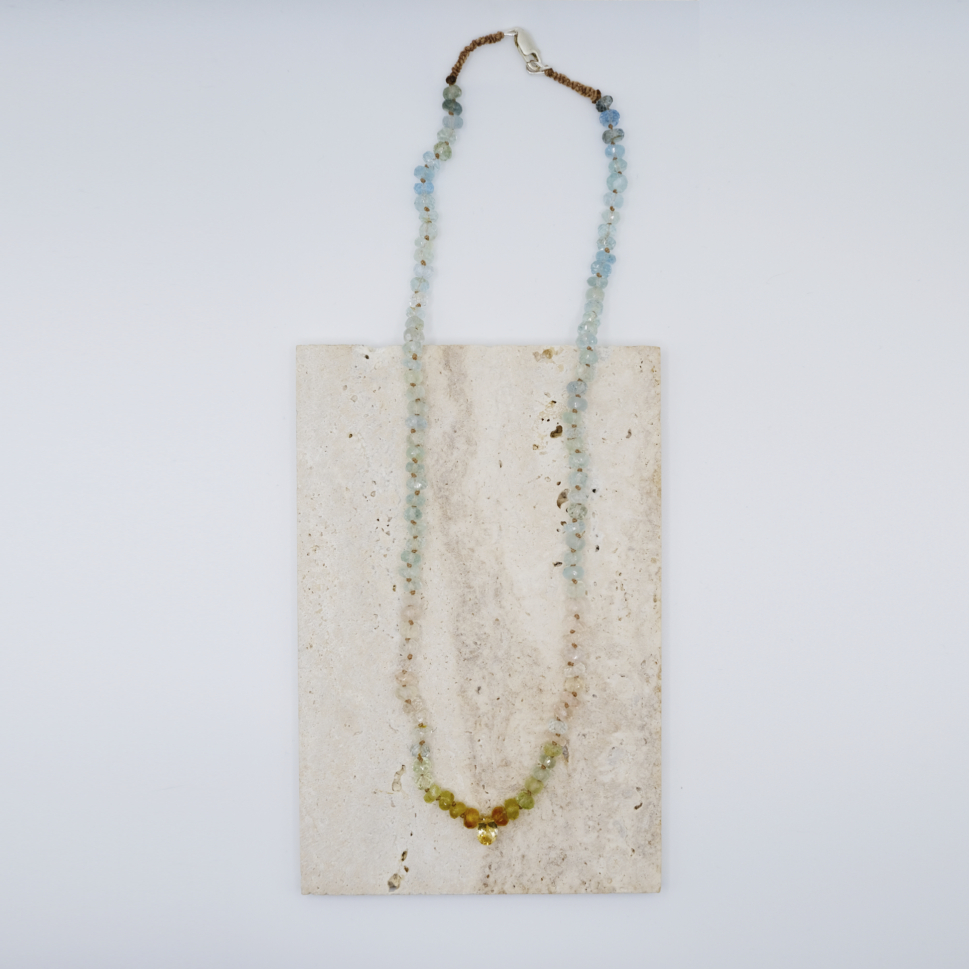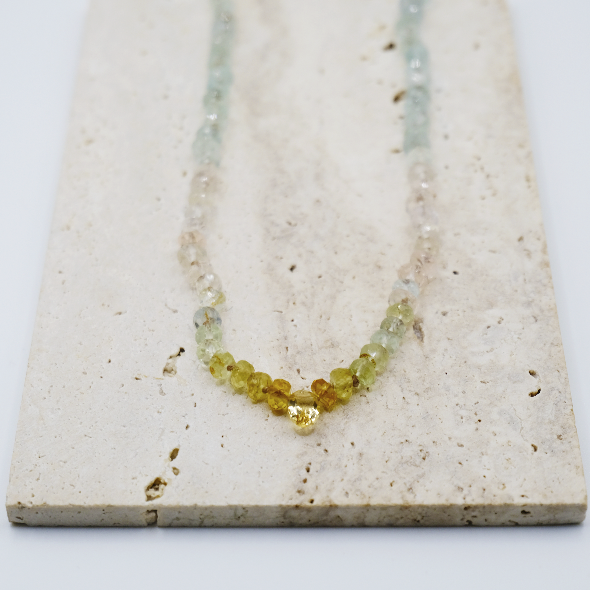 Collana sfumata con Acquamarina e Citrino e chiusura in argento 925 placcata oro.