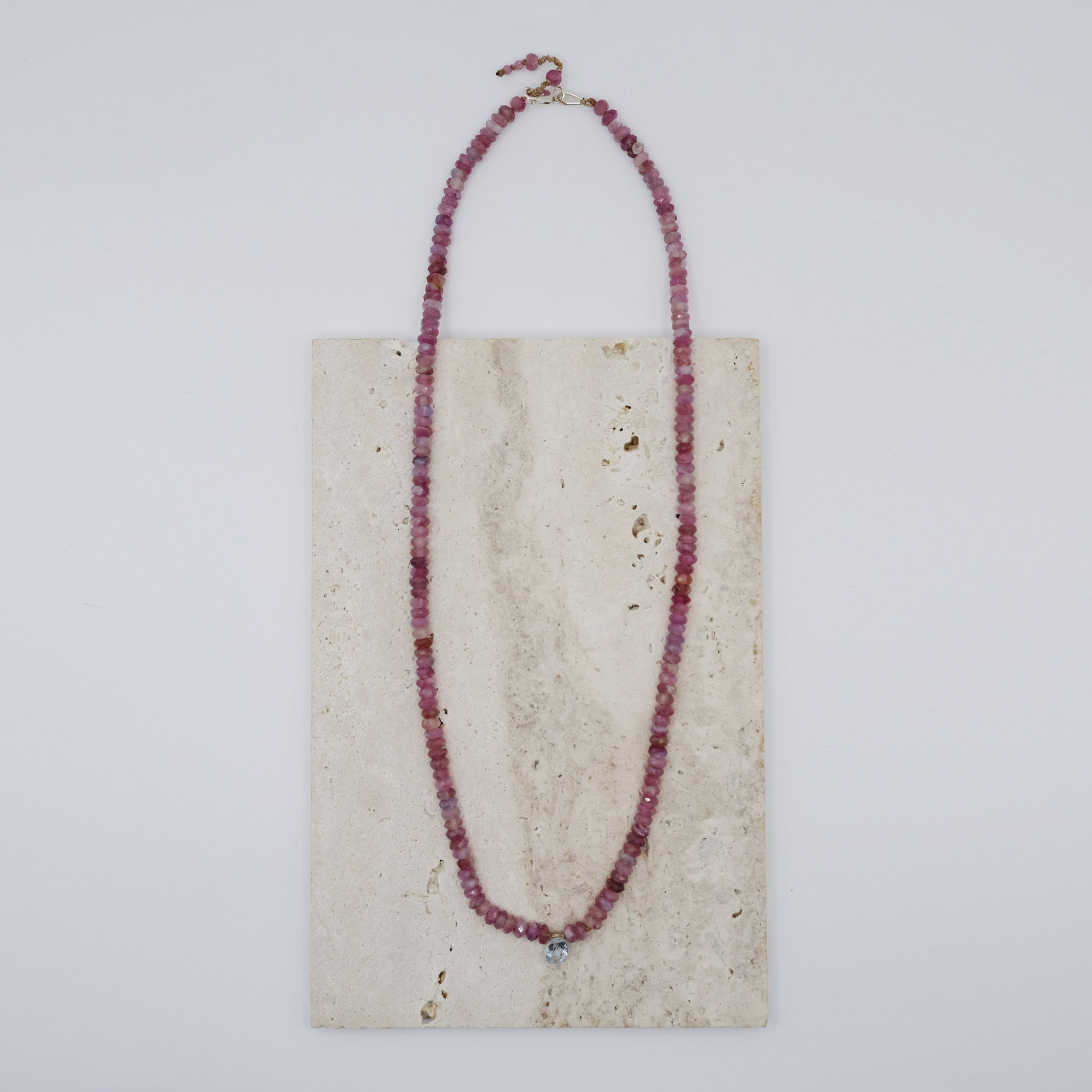 Collana con Tormalina di 3 mm e Acquamarina centrale. Chiusura in argento 925.