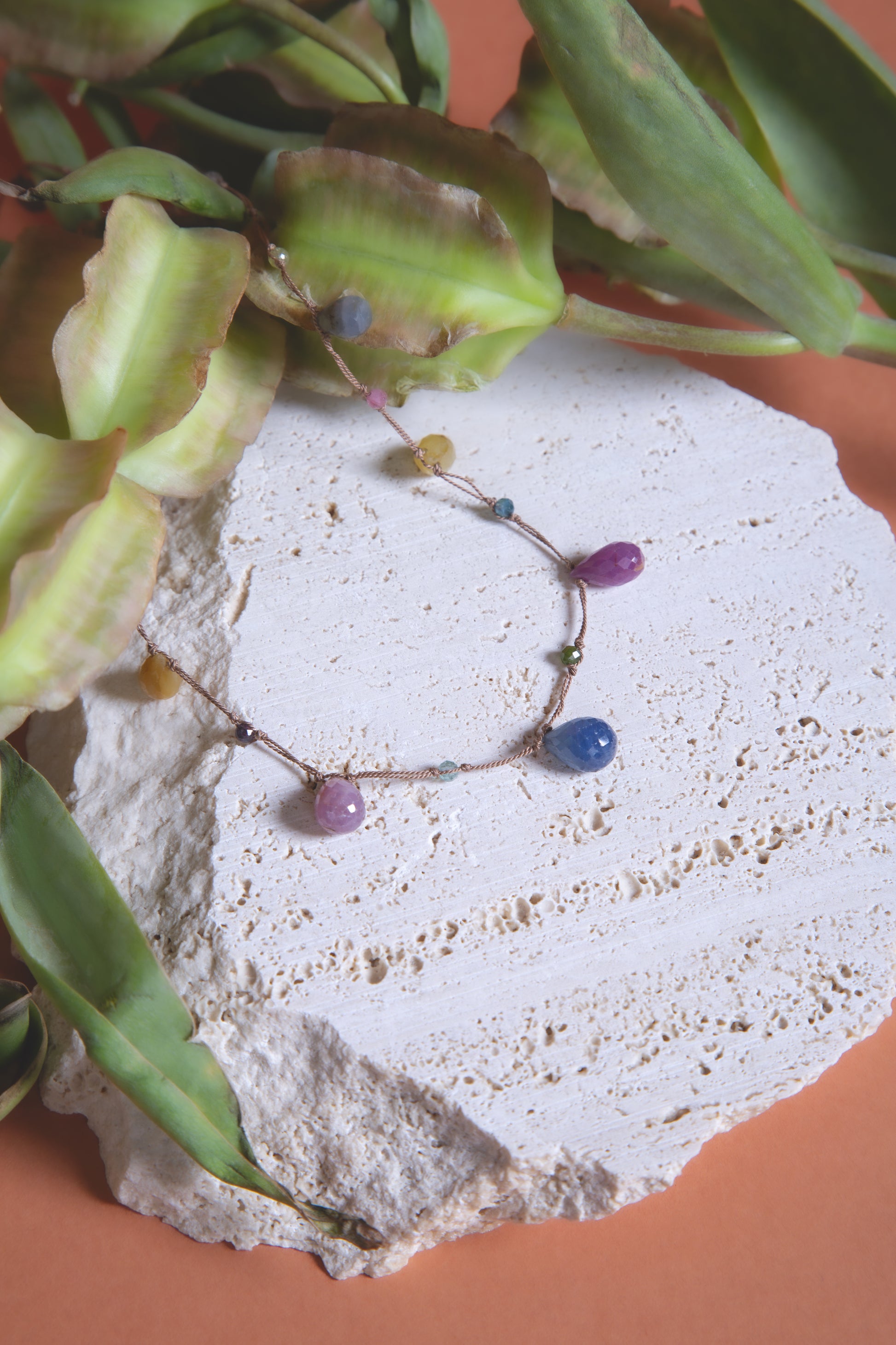 Collana con gocce di tormalina multicolor sfaccettate, chiusura in argento 925 placcato oro regolabile in lunghezza. I colori possono variare.
