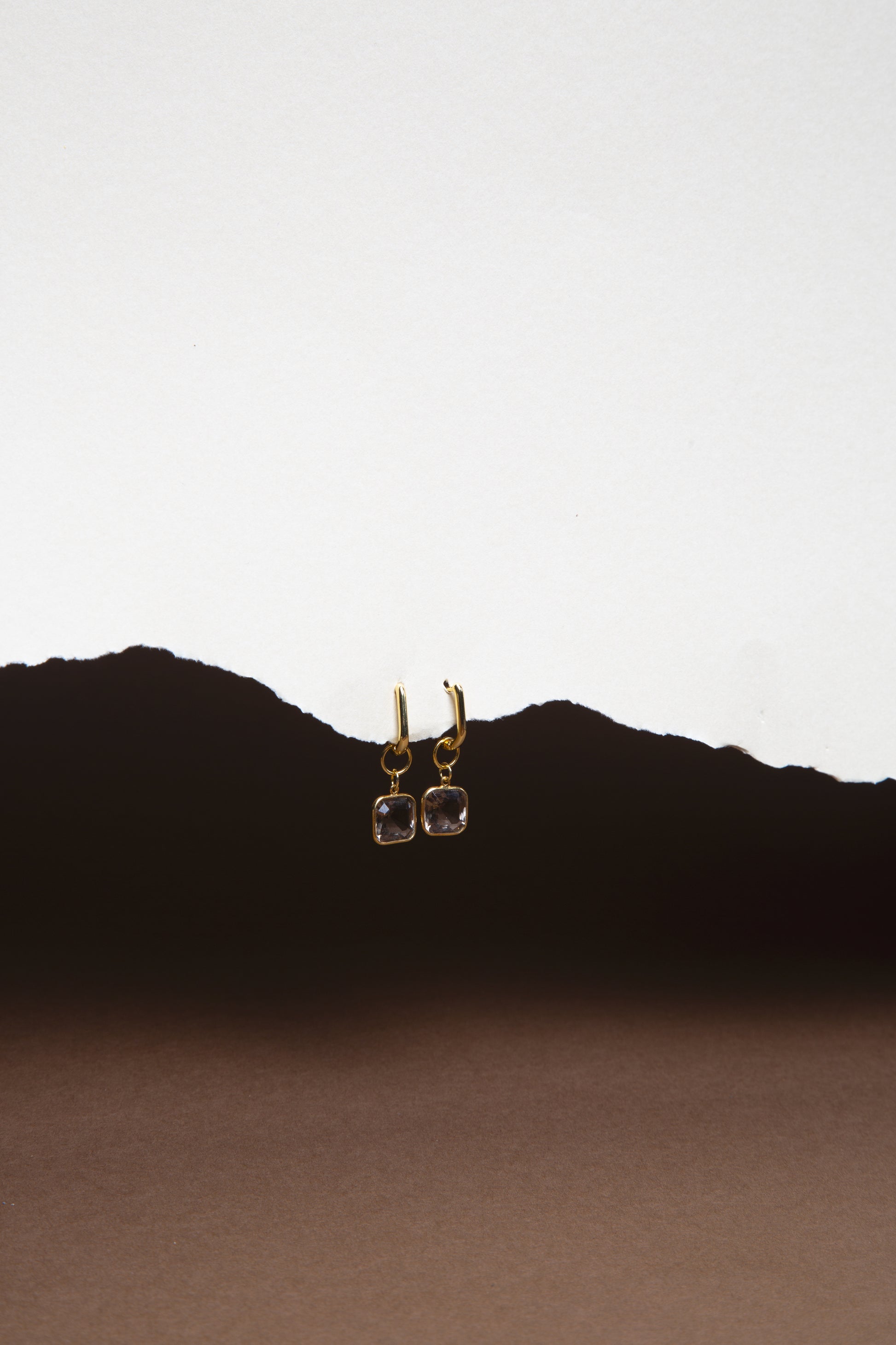 Orecchini con quarzo fumè, base in argento 925 placcato oro. Pezzo unico.