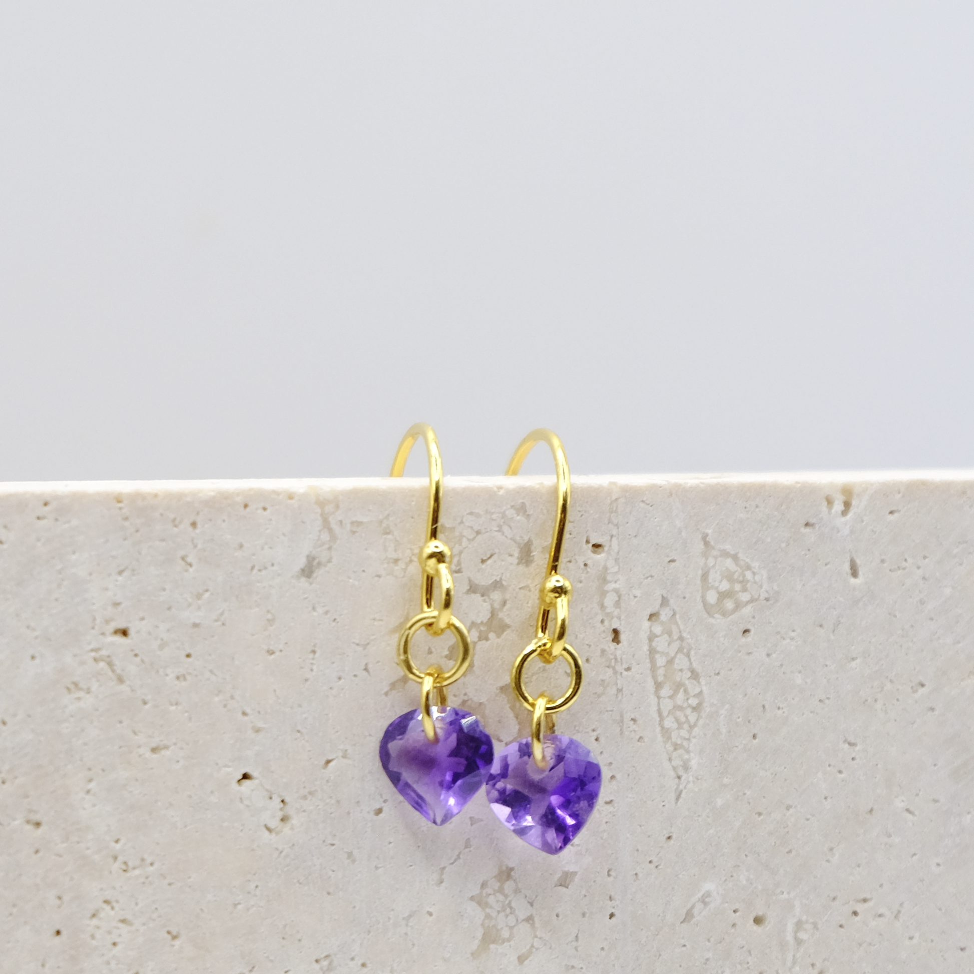 Orecchini in Argento 925 placcato oro con Ametista taglio cuore. Pezzo unico