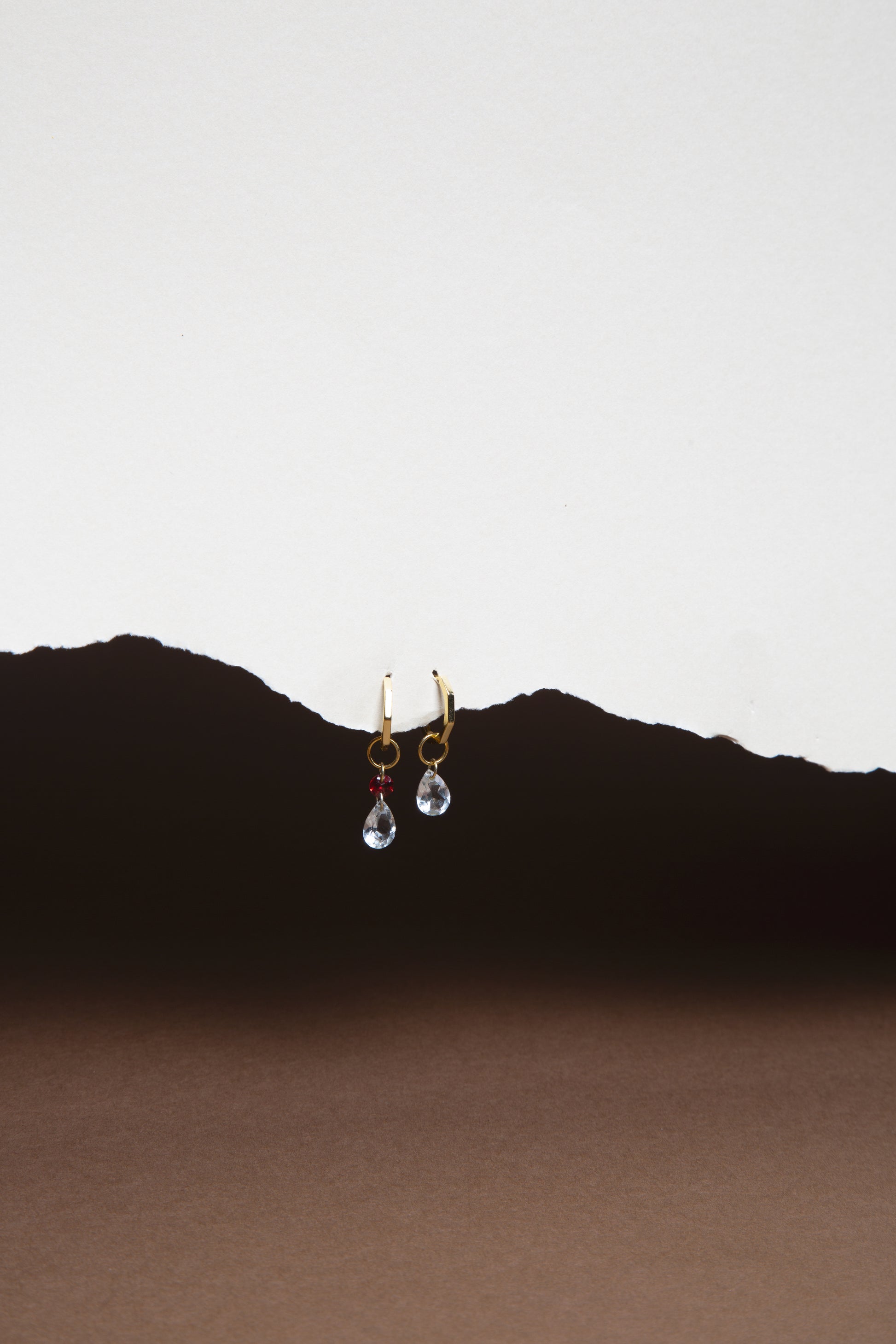 Orecchini con Gocce di Ametista verde e granato rosso, base in argento 925 placcato oro. Pezzo unico